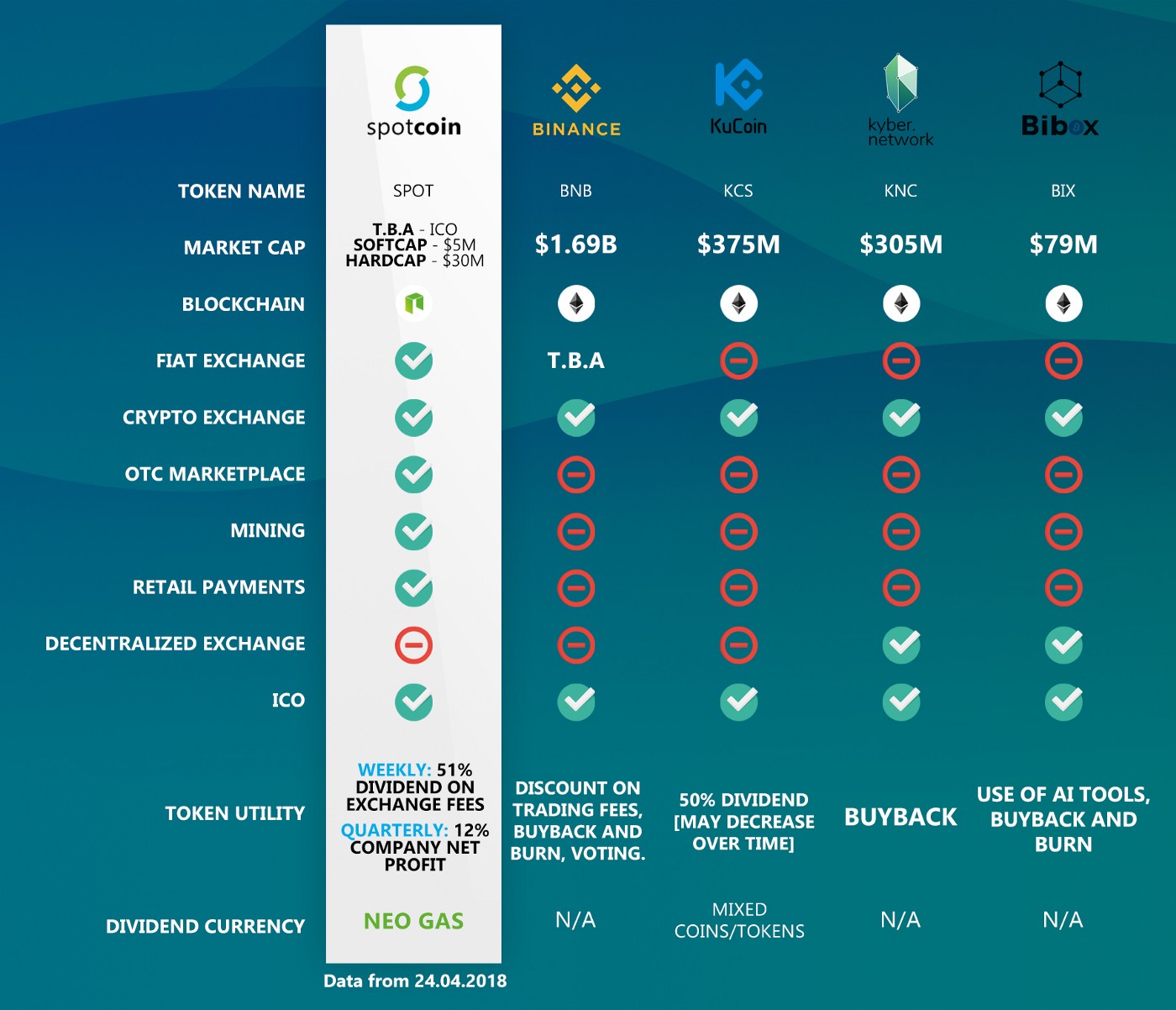 Here's Spotcoin compared with four other exchanges: