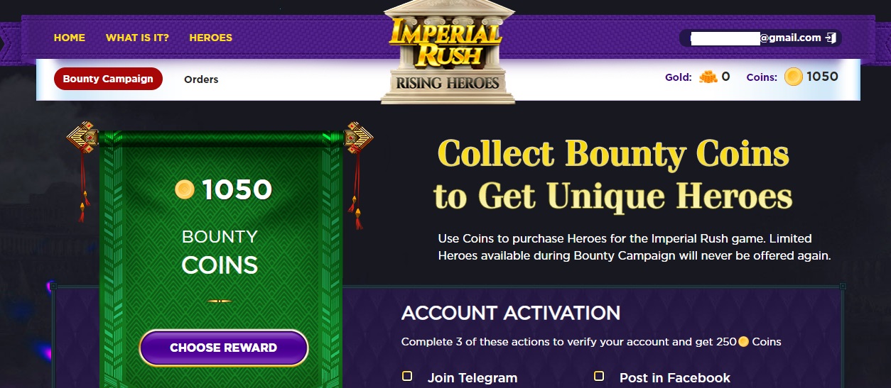 New game Imperual Rush holds Bounty and distributes #tokens!