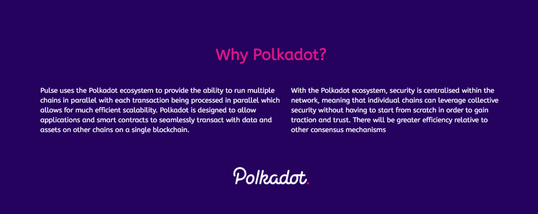 The Polkadot ecosystem is very important for the functionality of Pulse Network, unlike other traditional blockchains Polkadot of a Defi platform that allows for the integration of different projects together in a way that is taking decentralized finance to the next level. By using Polkadot to develop the Pulse network, the project team is creating a decentralized medical platform that can easily be integrated with other components of human life like insurance.