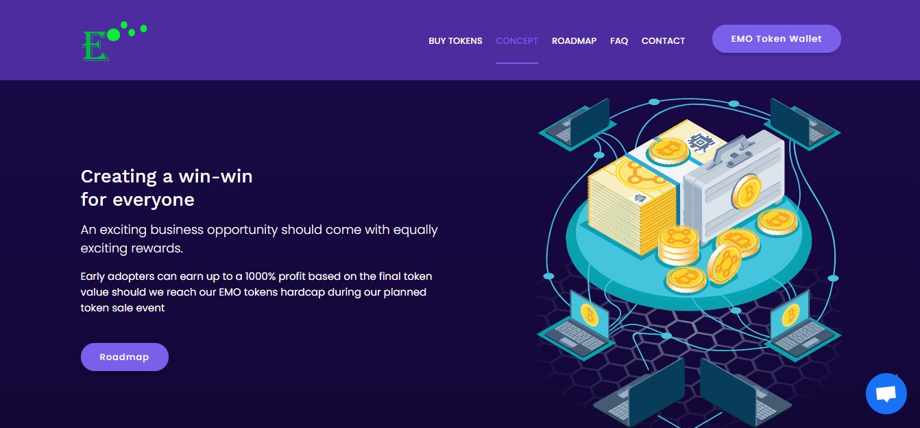 Creating a win-win for everyone - early adopters can earn up to a 1000% profit based on the final token value should we reach our EMO tokens hardcap during our planned token sale event.