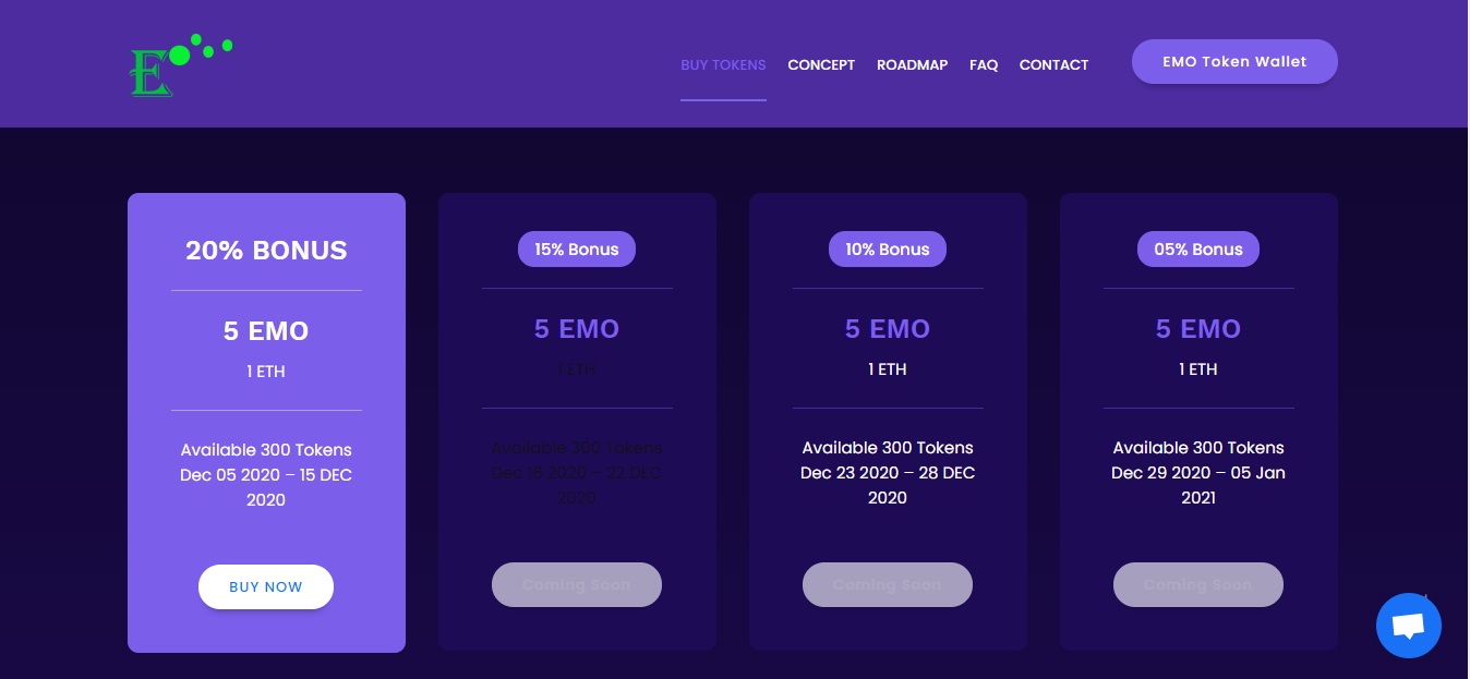 The EMO token sale events are unique as they offer tiered bonuses which include not only an increasing token price but also lifetime discounts, a commitment from us to support our tokens liquidity and future value, as well as access to future public sale.
