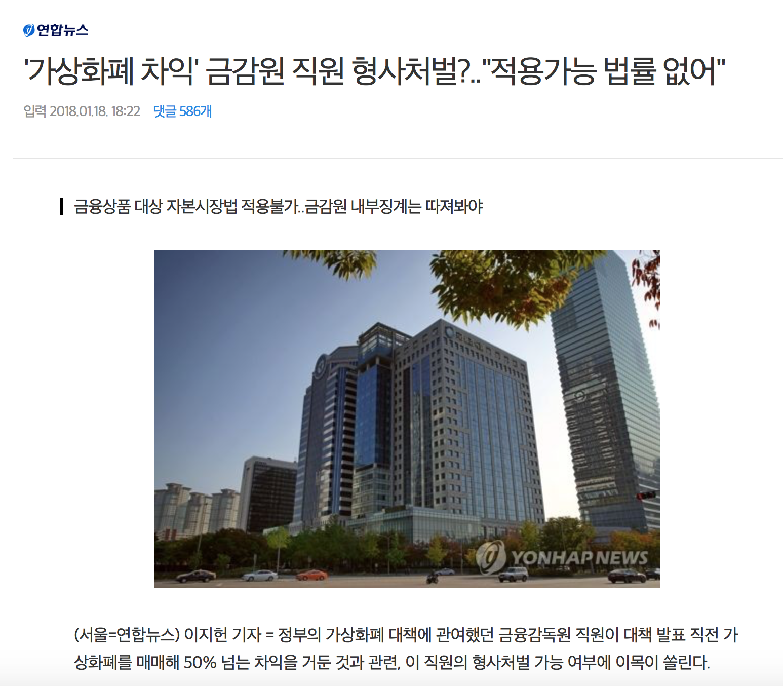 금감원 직원이 시세폭락이 예상되는 내부 정보를 이용해서 이득을 취한게 문제가 된다고 생각합니다.