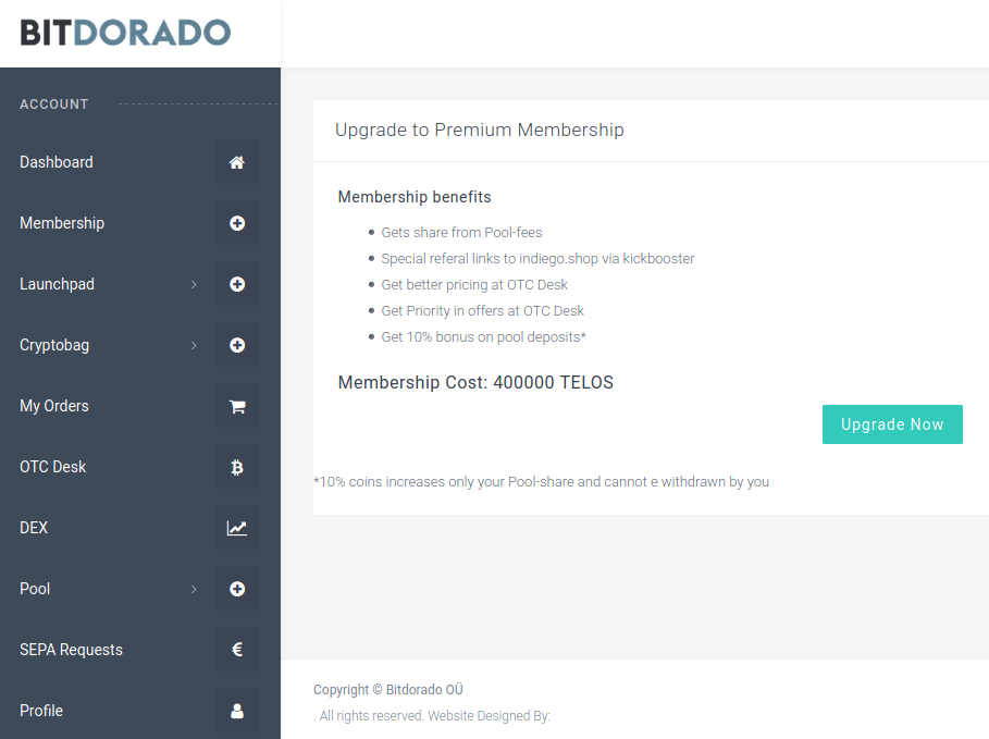 After KYC is done you can create an account on https://bitdorado.eu and start your journey getting many advantages.