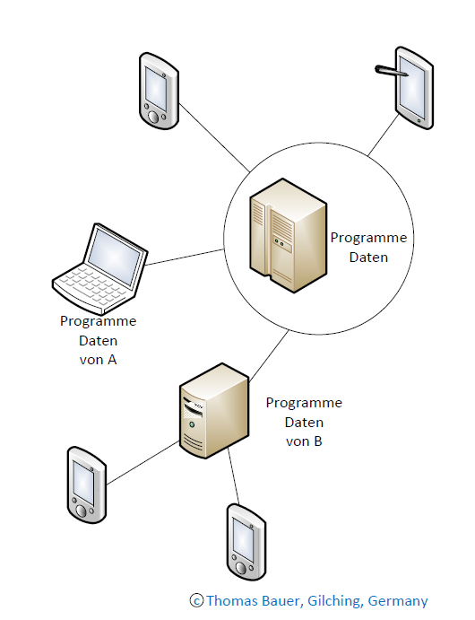 A peer-to-peer (P2P) computer system is a decentralized distributed computer system with each user and his or her independent computer being a network participant running programs and holding data. This will be the topic of the next article.