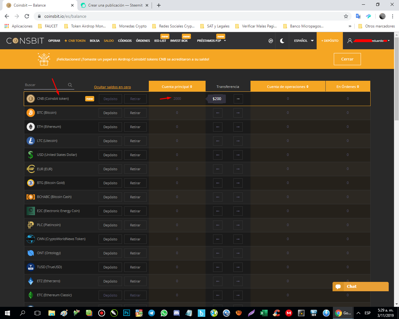 - Esta casa de cambio esta lanzando su propio token CNB (Coinsbit Token) y esta obsequiando Enero 2020.