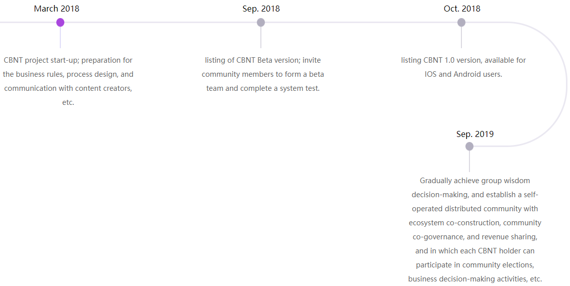 The CBNT team is always open for communication, they regularly participate in various forums, trying to advertise their product. According to the existing roadmap, everything will be done quickly and qualitatively. The CBNT project is currently undergoing beta testing, this approach allows you to quickly identify and eliminate disadvantages. Trial mobile applications will be launched in the autumn - this will allow customers of the decentralized CBNT platform to access quality content at any time. The final stage will be the creation of a governing body within the community CBNT - in this case, developers are going to allow each one to decide the fate of the platform. By using internal markers, you can influence collective decisions.