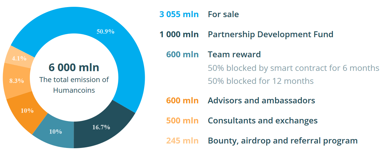 Tokens and features of the ICO project Humancoin