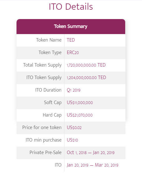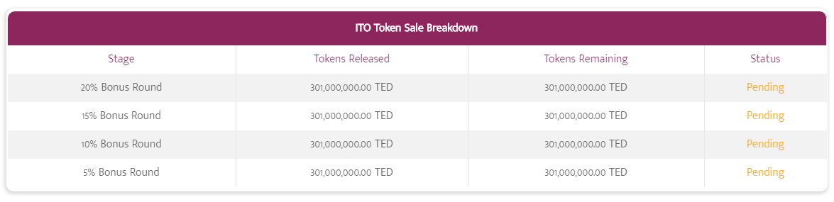 ITO Token Supply 1,204,000,000.00 TED