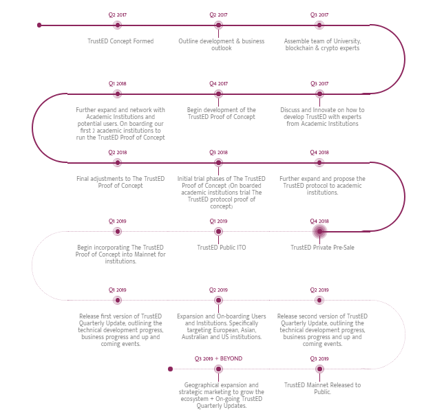 Q1 2019 – Begin incorporating The TrustED Proof of Concept into Mainnet for institutions.