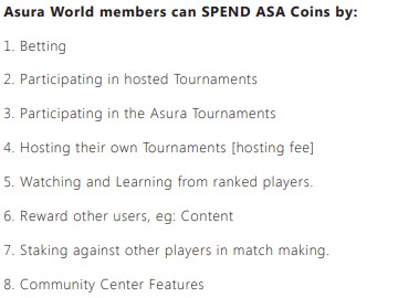 Fueling Asura World is the ASA Coin, an NEP-5 token which provides a range of functions and utility across the platform. This will be used as a Coin for payments, bets, and stakes, and to incentivize the sharing of quality content, professional guides, forum contributions and more.