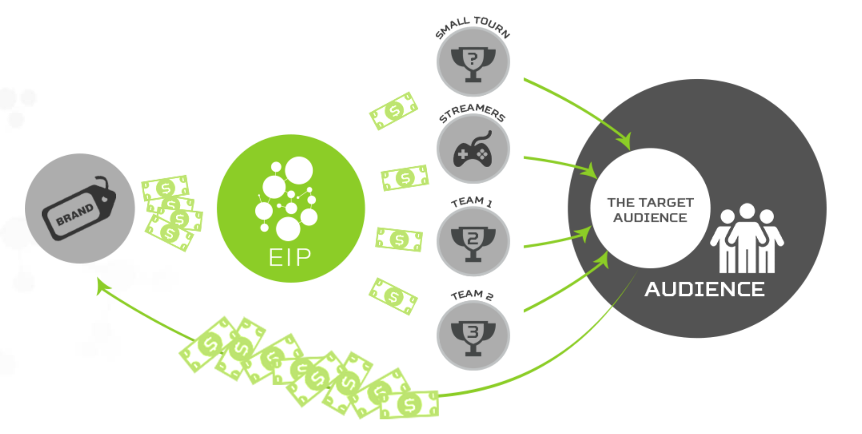 EIP memiliki pengalaman bertahun-tahun dalam bekerja dengan mitra tersebut dan memiliki banyak hubungan strategis. Salah satu tujuan EIP adalah menyediakan pengalaman dan koneksi ini ke layanan 100% dari target audiens eSports.