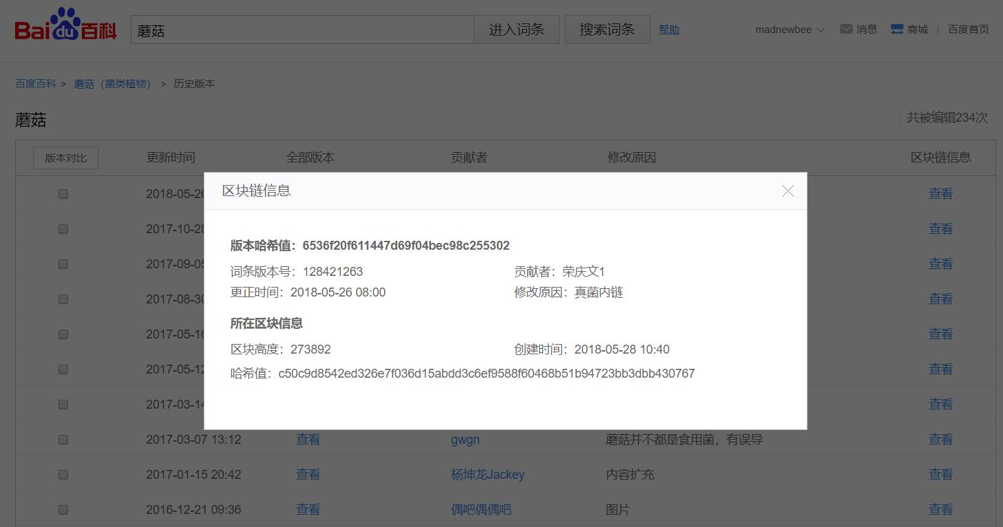 If you click this :https://baike.baidu.com/historylist/%E5%8C%BA%E5%9D%97%E9%93%BE/13465666 ,you will find blockchain .