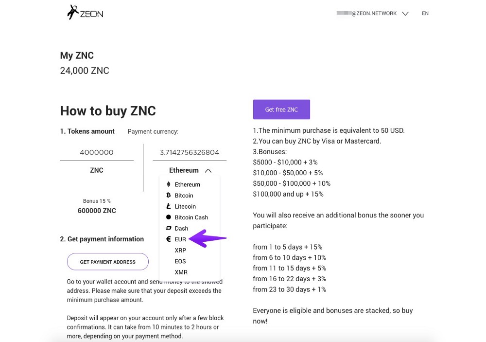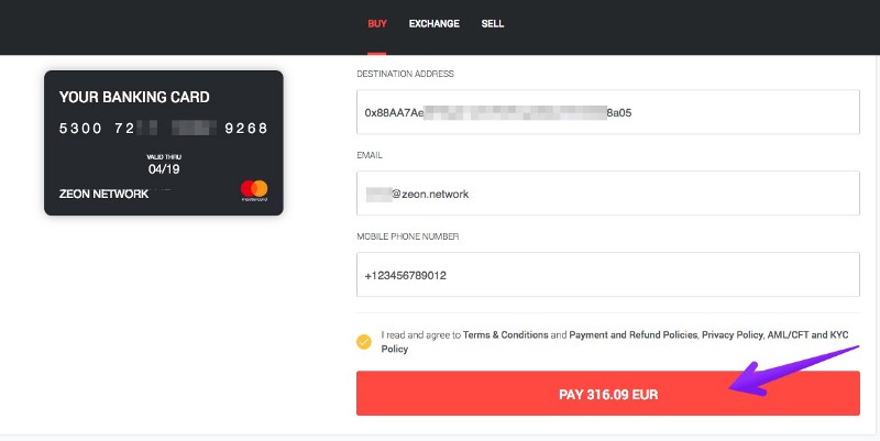 💳 How to get ZEON tokens by Visa or Mastercard?
