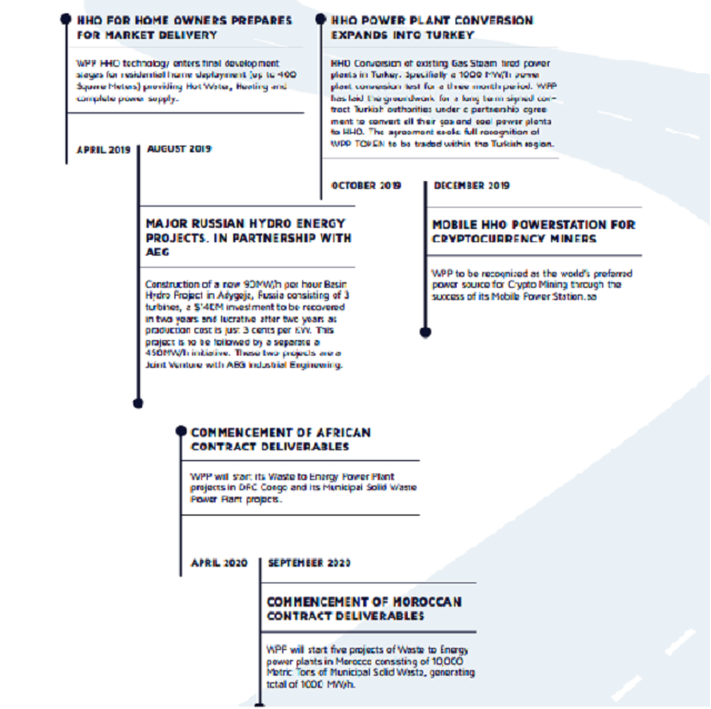 The existing WPP renewable energy contract with various governments around the world, valued at over $ 50 billion, begins with an initial focus on $ 6B USD starting in December 2018. WPP ENERGY has signed contracts with various countries around the world at the federal government level for green energy production for a continuous 35 year period. The contract includes an PPA (Power Purchase Agreement) that converts MSW (Municipal Wastes) into electricity and becomes a product to be used for the local market. - WPP EXCHANGE