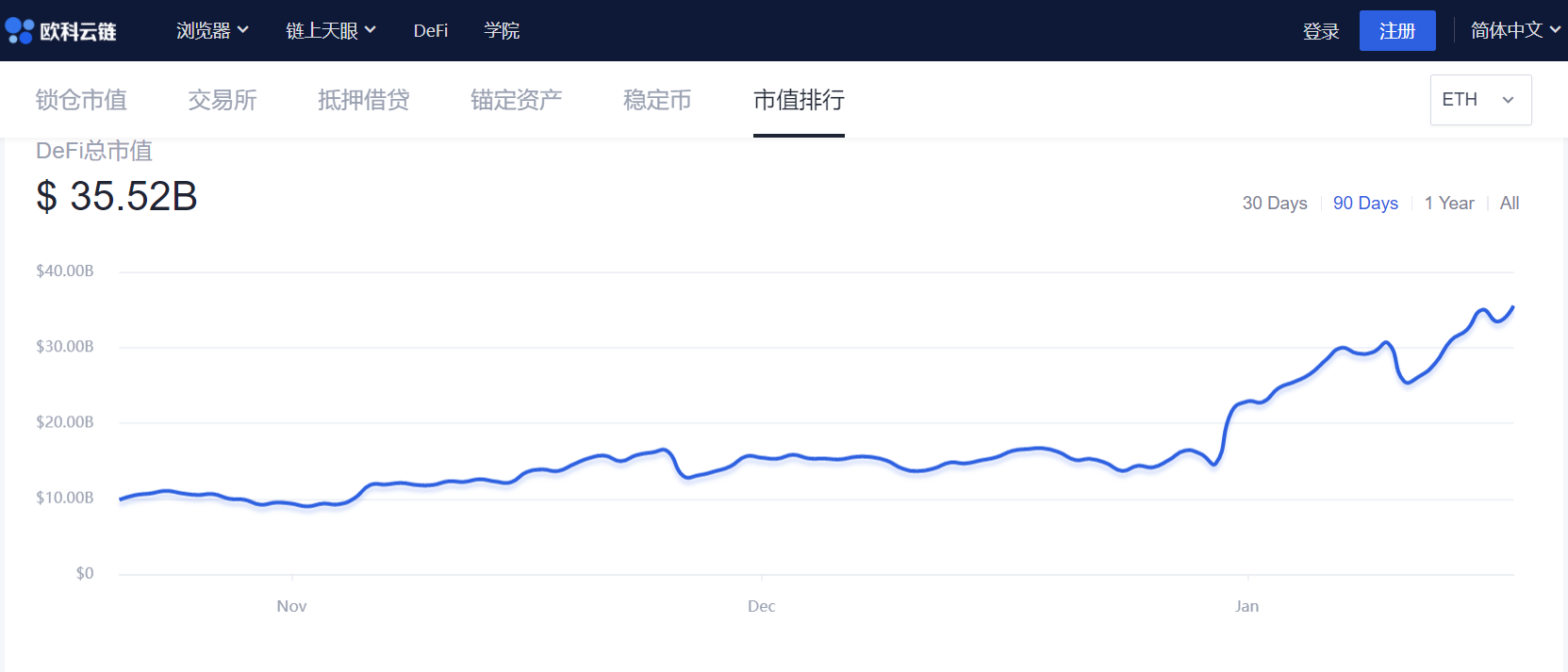 Curve is similar to Uni. Curve's lock-up volume dropped to a 90-day minimum of US$815 million on October 26. During the same period, the market value of Crv also fell to US$34.4 million, and the price of its token Crv fell to US$0.32. After the end of October, the locked position of Curve continued to rise, and the price of Crv also rose to $1.6. The correlation between locked position and market value & price was once again confirmed. On the whole, as Bitcoin begins to fluctuate, the focus of the market seems to begin to focus on more other sectors. The rotation of funds and sectors may promote concepts including DeFi, public chains, and all potential topics, and present a certain "altcoin season" characteristics.