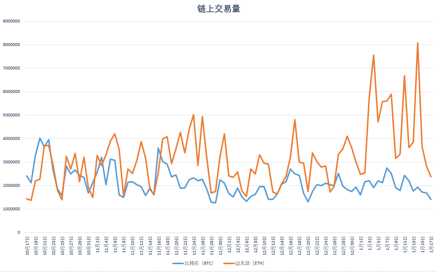 Bitcoin's weekly transaction volume was 13.2215 million BTC, a decrease of 13.32% from the previous month; while the on-chain transaction volume of Ethereum reached 31.155 million ETH, a decrease of 13.23% from the previous month.