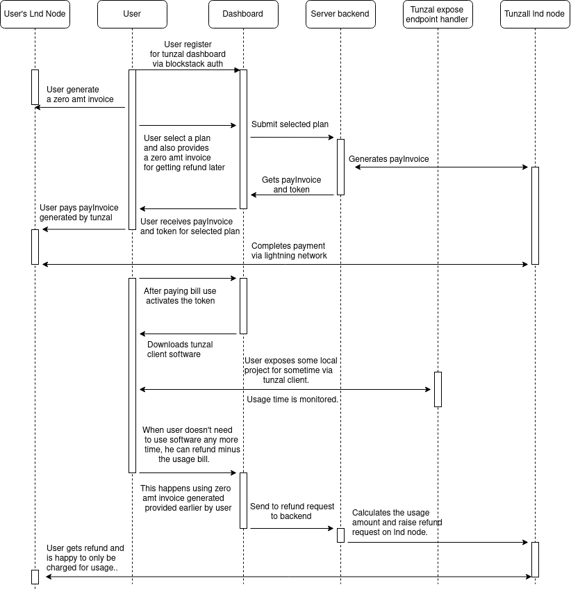 Now for an example: if the user purchases plan A for 1 hr with 60 satoshis. If he uses our service for 20 minutes and raises the request within 60 minutes time frame then he is refunded 40 satoshis. Though if he misses this time frame, no refund is provided. This is because, when generating an invoice, expiration time must be specified. As a result, when generating the zero amount invoice(ZCI) if the user-specified 60*60 seconds then that invoice is only valid for one hr. So, here we assume the expiration of ZCI to be equal to the selected PLAN duration.