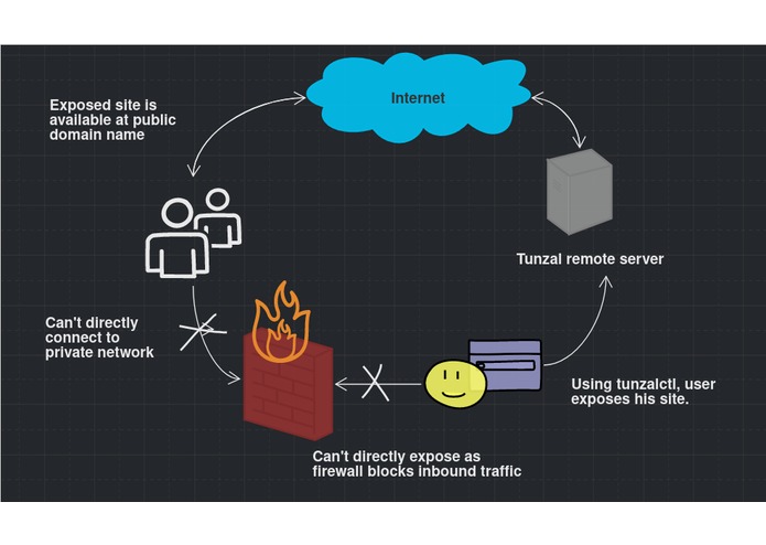Tunzal is a tunneling solution to expose local endpoint outside of the private network. User can use subdomains of tunzal.ml as their public endpoint. The request coming to the public endpoint will be reverse proxied to local services running on their system. This service is similar to ngrok or agro from Cloudflare. Here, we enable users to use their desired subdomain for a premium fee. The premium feature is available for a cost on hr, day, month or year basis.