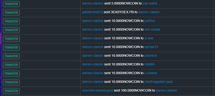 Thanks to the following people for interacting with the NOWCOIN that I sent -