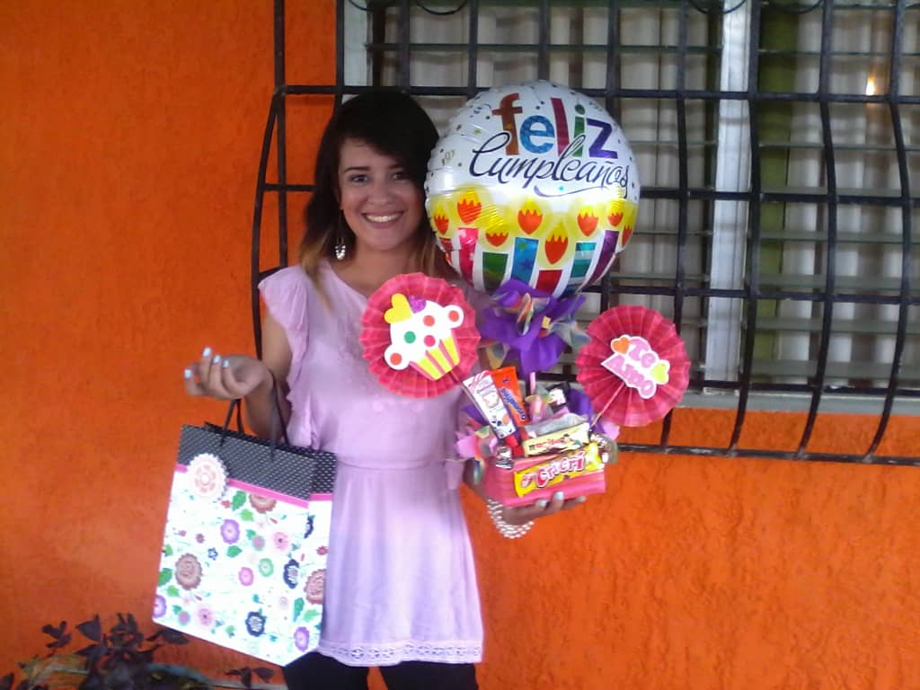 Quise sorprenderla apenas se despertara, colocando regalos en su puerta, sabia que al ver los chocolates le alegraría el día jejeje.