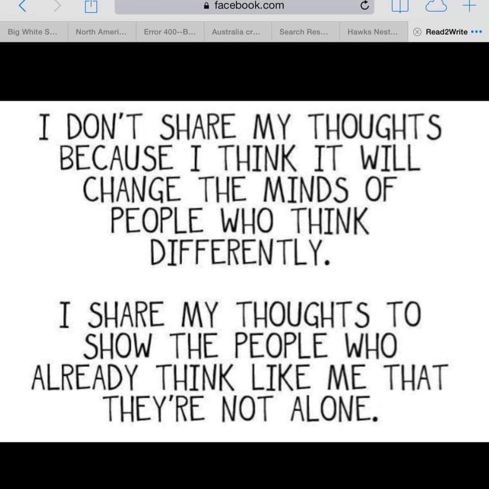 Haha. That is about the truth there. I know that I am not alone in my positions but if no one shares we can't find each other.