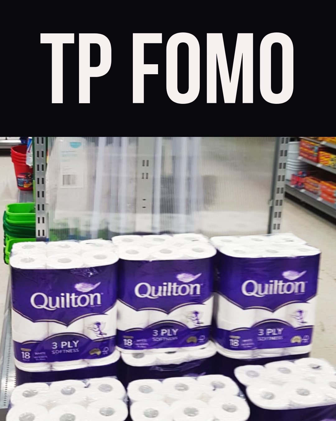 The problem, and this is the boat I'm in, is FOMO. Running out and then being stuck hunting down tp or like many others right now, lining up at the local Coles or Woolies before opening like you're waiting for the latest iphone release.