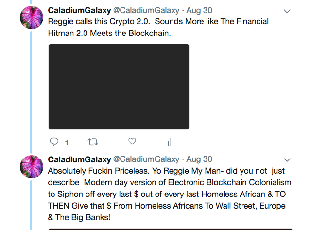 Now then on the heels of this Reggie has another video out. The BLACK Blockchain conference. Where the woman are QUEENZZZZZ and the Men are KANGZZZZ baby. Ya that is right- the guy introducing Reggie actually has a CROWN on his HEAD.
