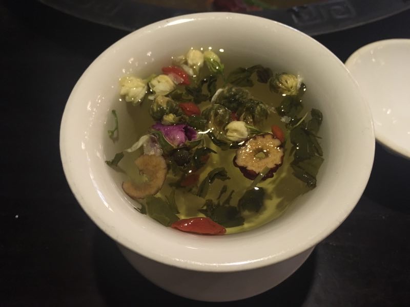 We proceded to have an amazing hot pot( 火锅 ) with floral tea.