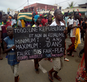 Mes écrits me font couler les larmes quand je voie les peines de l’Afrique ,et surtout ce qui brule mon cœur , c’est le pays voisin (Togo) ou l’actuel président togolais Faure GNANSIGBEY , le fils du feu président GNANSIGBEY Eyadema mourut au pouvoir , sème de la zizanie au Togo du faite qu’il refuse la proposition du peuple qui a pour but de toucher à l’ancienne constitution en améliorant certaines lois qui vont en défaveur de la dictature , de la corruption et de l’usurpation. Pour cette raison de refus, le peuple togolais organise de jour en jour des marches et des manifestations pour que le monde entier vienne à son secours.