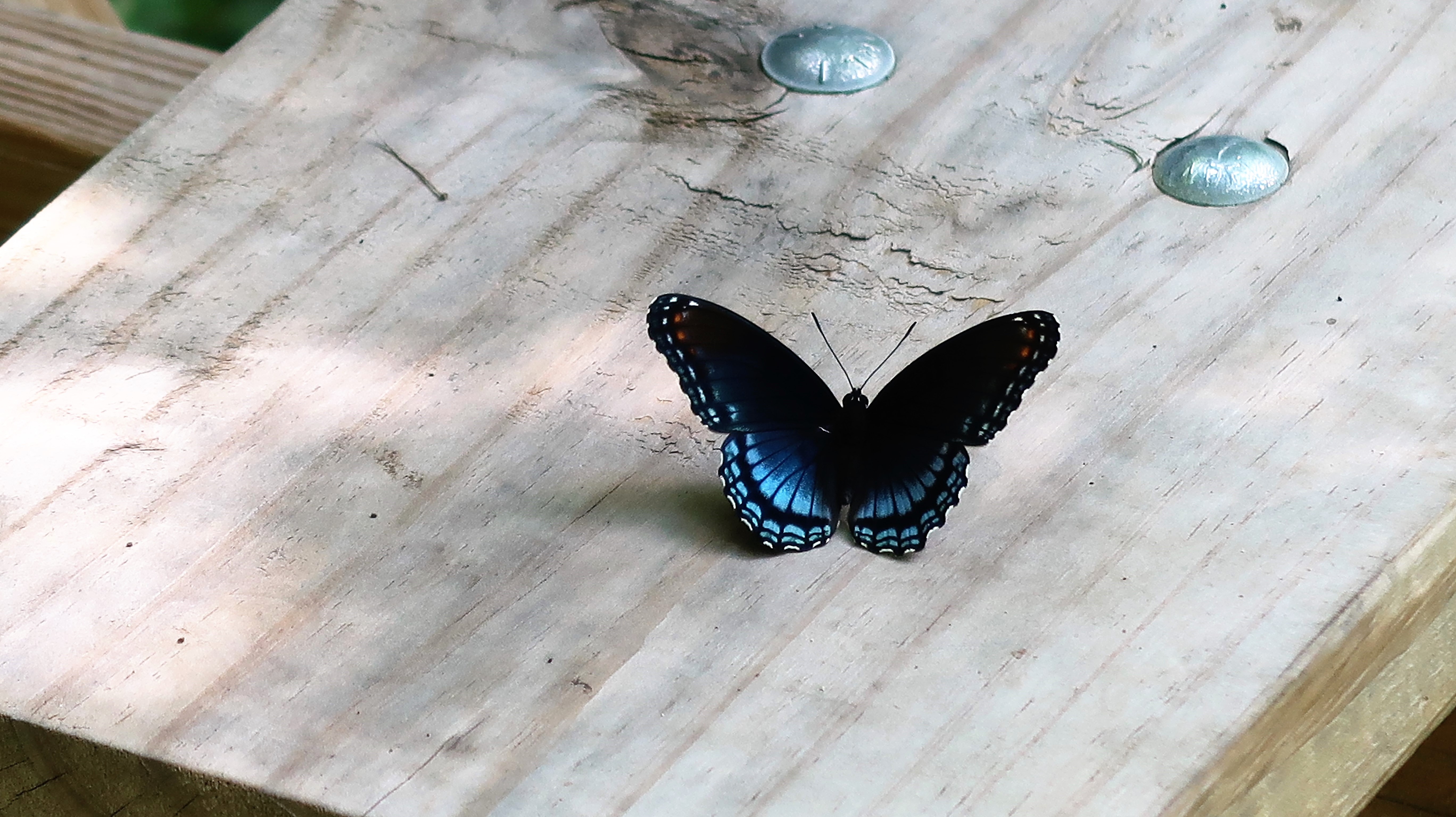 Speaking of beautiful colors, we were very lucky to catch a close up look of this butterfly. I love the vibrant blue in his wings.