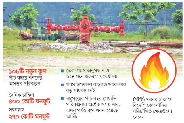 However, if there is no plan or initiative to increase the gas leakage of the government, then state minister for power, energy and mineral resources, Nasrul Hamid, mentioned about the plan to dig 108 wells of Bapex. But there is no place in it, where the well can be excavated by the well in the national grid. Apart from this, half the time of BAPEX's five-year plan, the well has been excavated till now. The two more are under mining. From these, the national grid gas has little to be added. However, the State Minister is also thinking about the government's inefficient energy sector and foreign exchange for import of excessive energy.