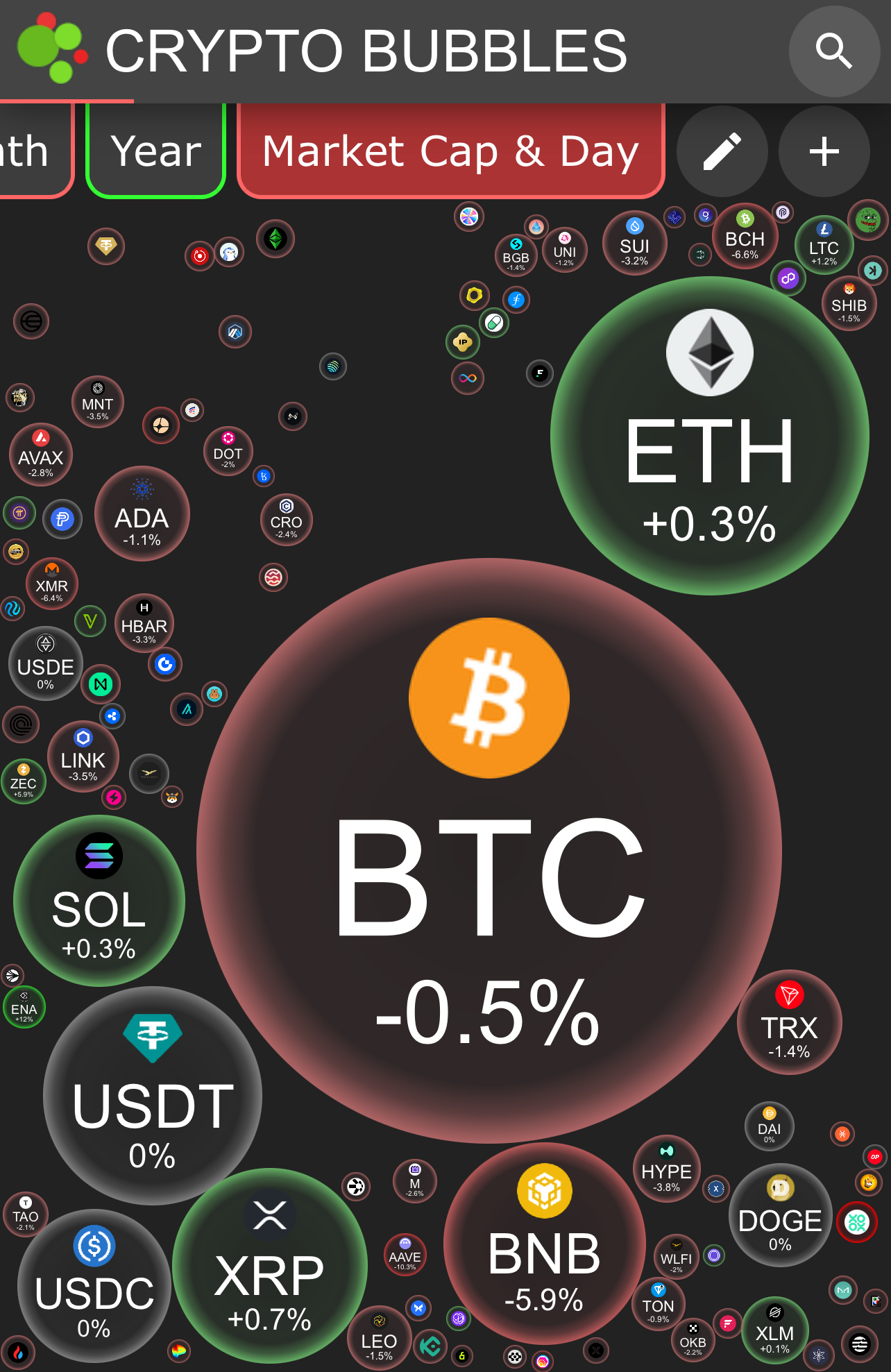 by market cap on CRYPTO BUBBLES