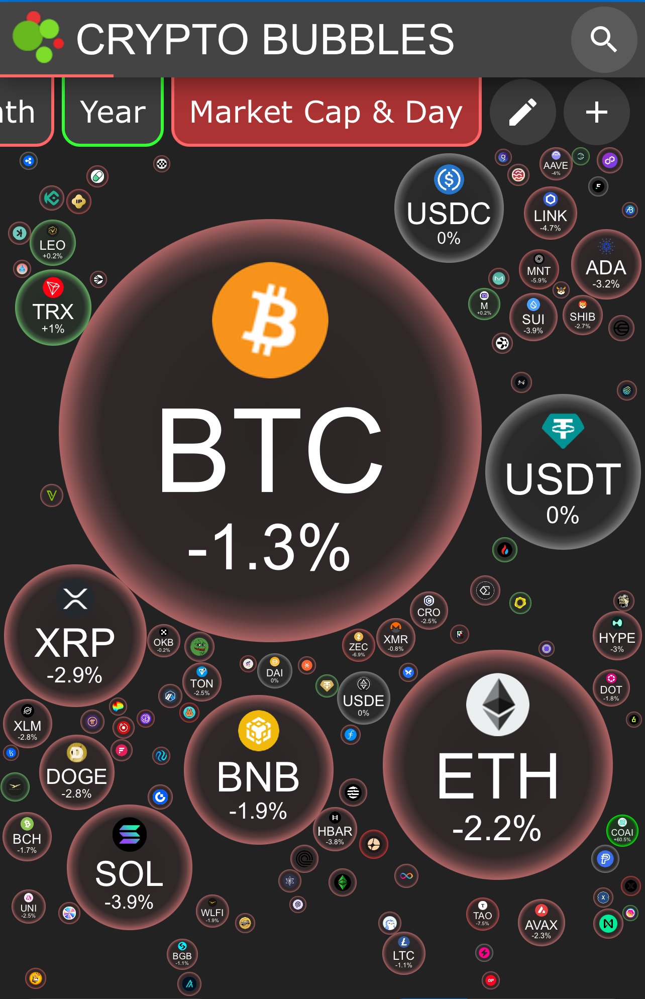 by market cap on CRYPTO BUBBLES