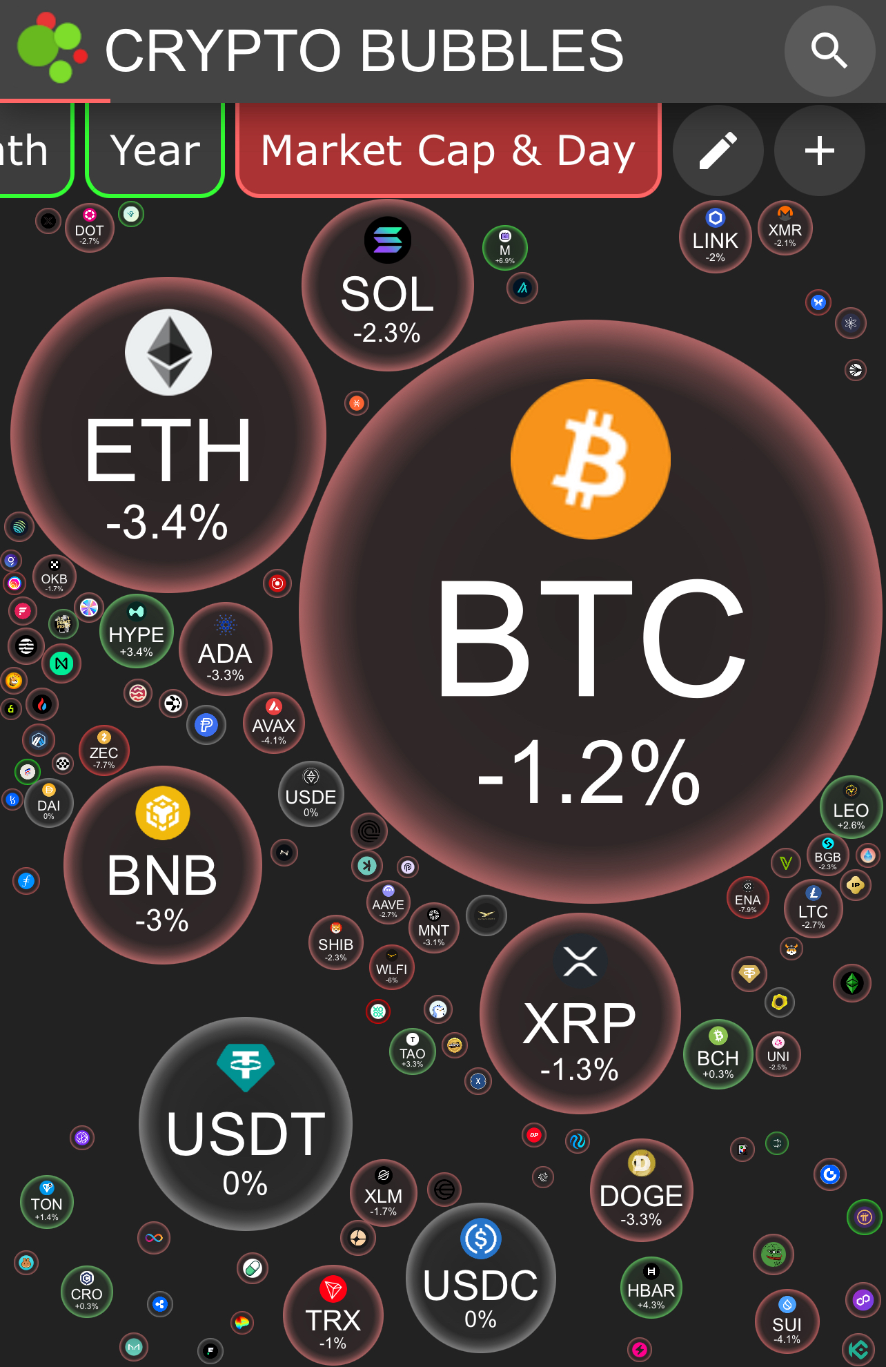 by market cap on CRYPTO BUBBLES