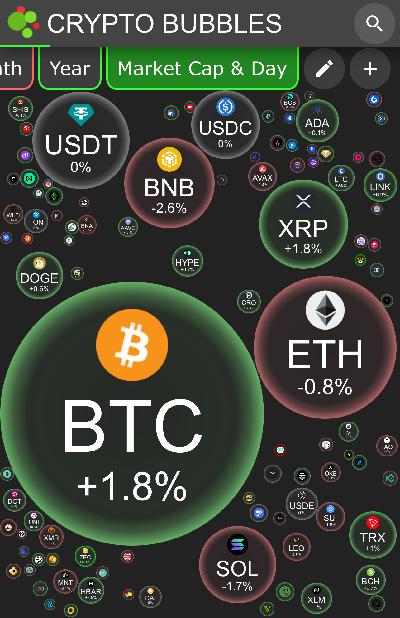 by market cap on CRYPTO BUBBLES
