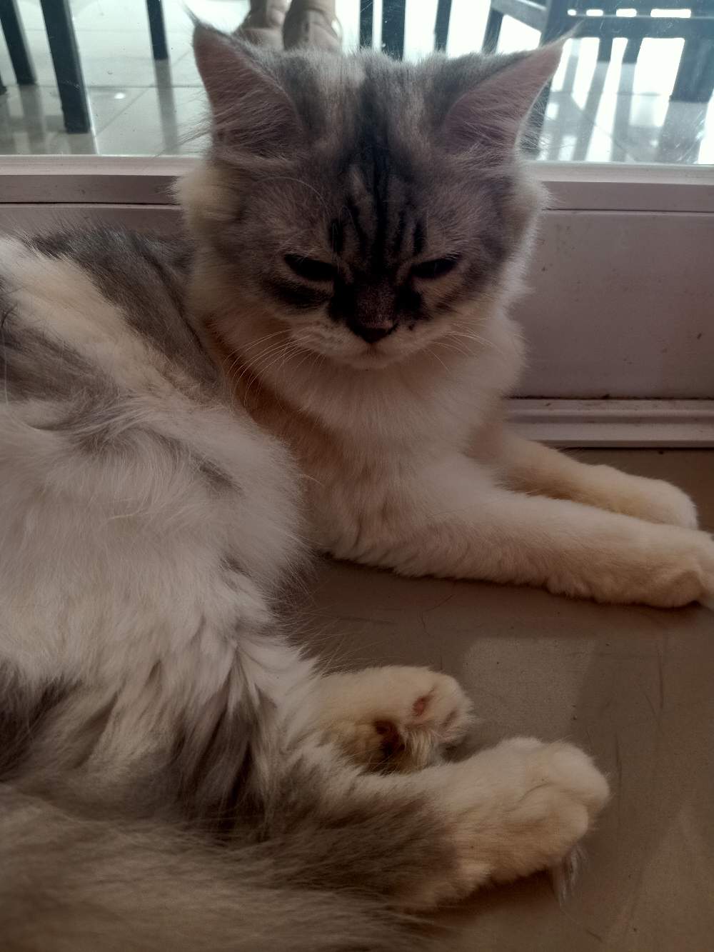 This one seems to be very grumpy but he is actually not. That is just the cat's normal face.