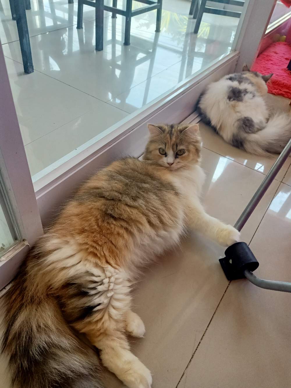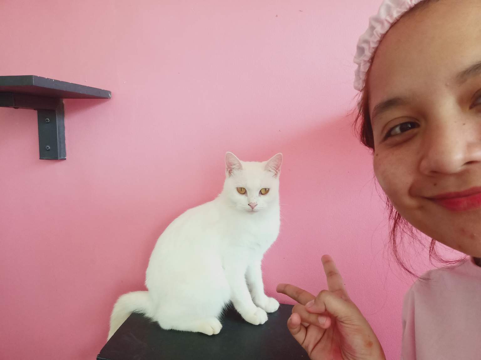 Anyway, as you can see, I was dressed in a pink gown. This was for me and the other customers not to be covered by the thick fur of cats.