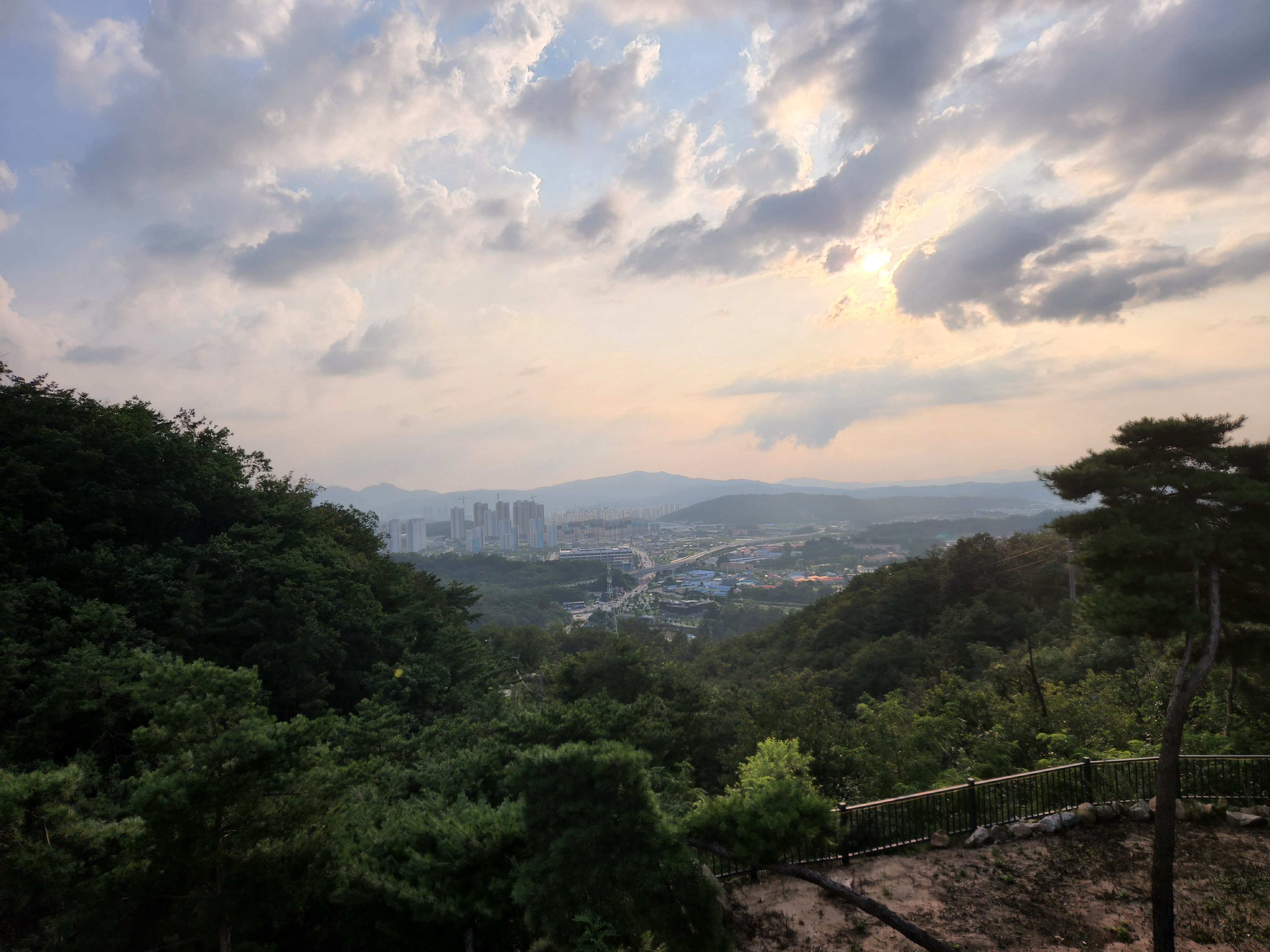 가보니, 모든 게 갖춰져 있다. 카페, 고기집, 도구들이 준비되어 있어 돈만 가지고 가면 된다. 오후에 산 정상에서 전망을 보니 구름과 하늘, 햇빛이 조화되어 아름다음을 빚어 내고 있다. 한가한 어느 날 가족 또는 지인들과 함께 오면 추억을 쌓을 수 있는 곳이다. 넉넉하고 편안한 마음을 갖고 갈 수 있다면 그만일 것 같다.