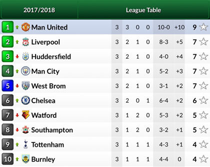 Results from Rounds 1-3 of the Premier League 2017/18