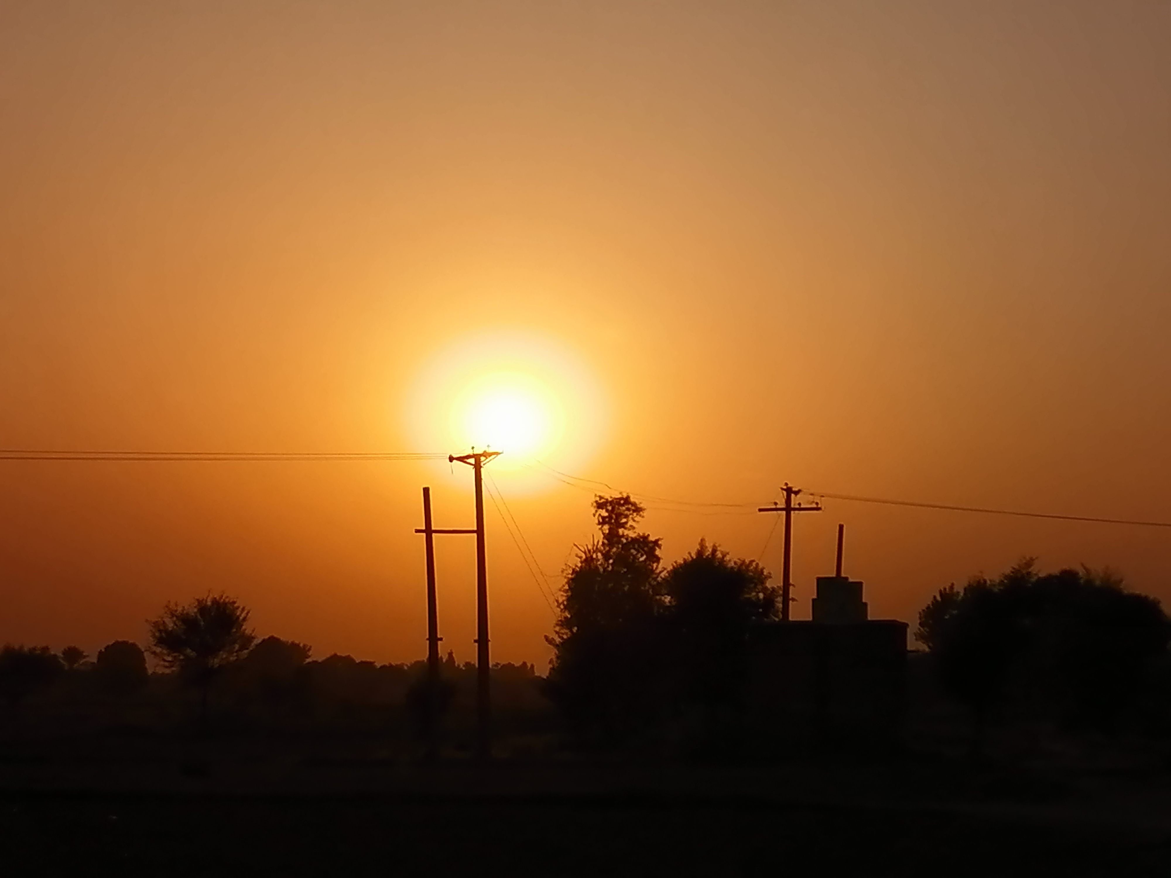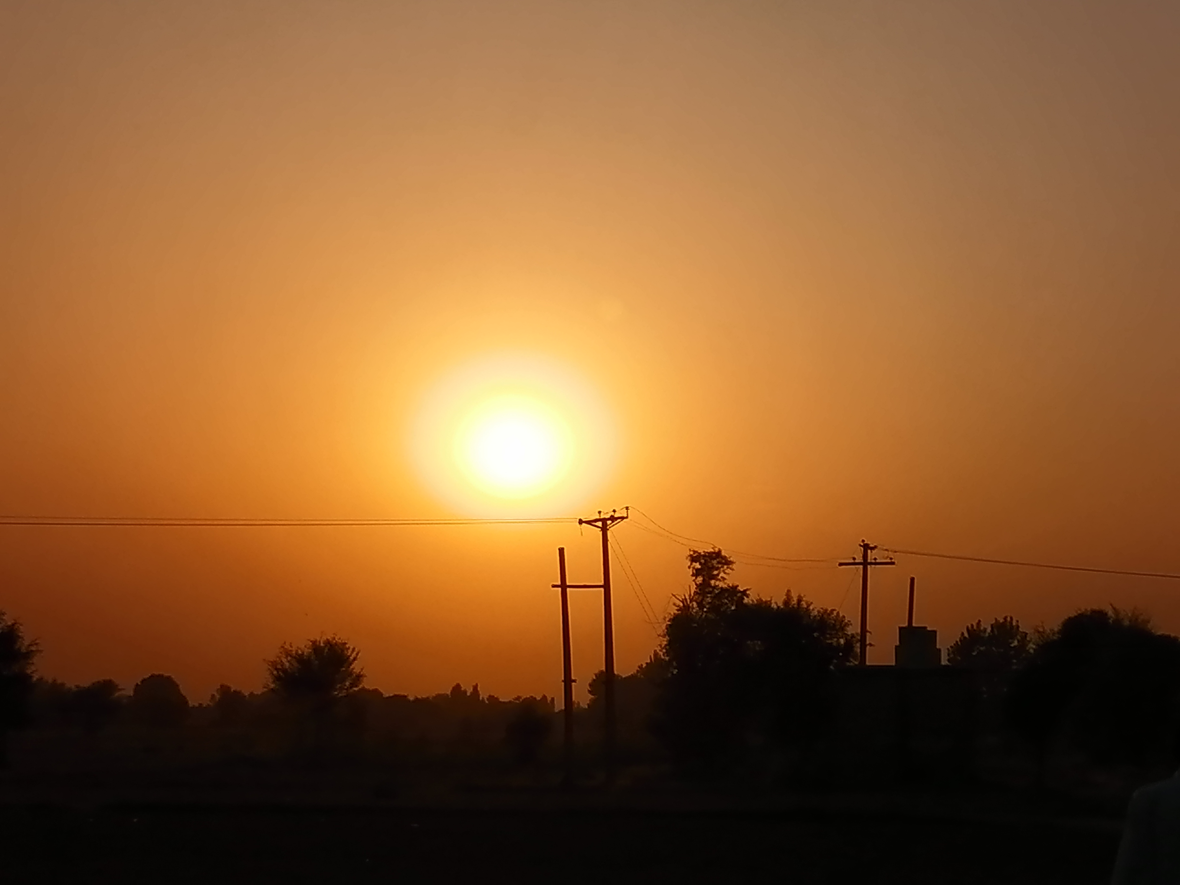 یہ تصویر میں نے اس وقت بنائیں جب سورج کے سامنے ایک بجلی کا کھمبا آیا ہوا تھا اور میری دو انگلیوں کے درمیان سورج کا یہ منظر تھا