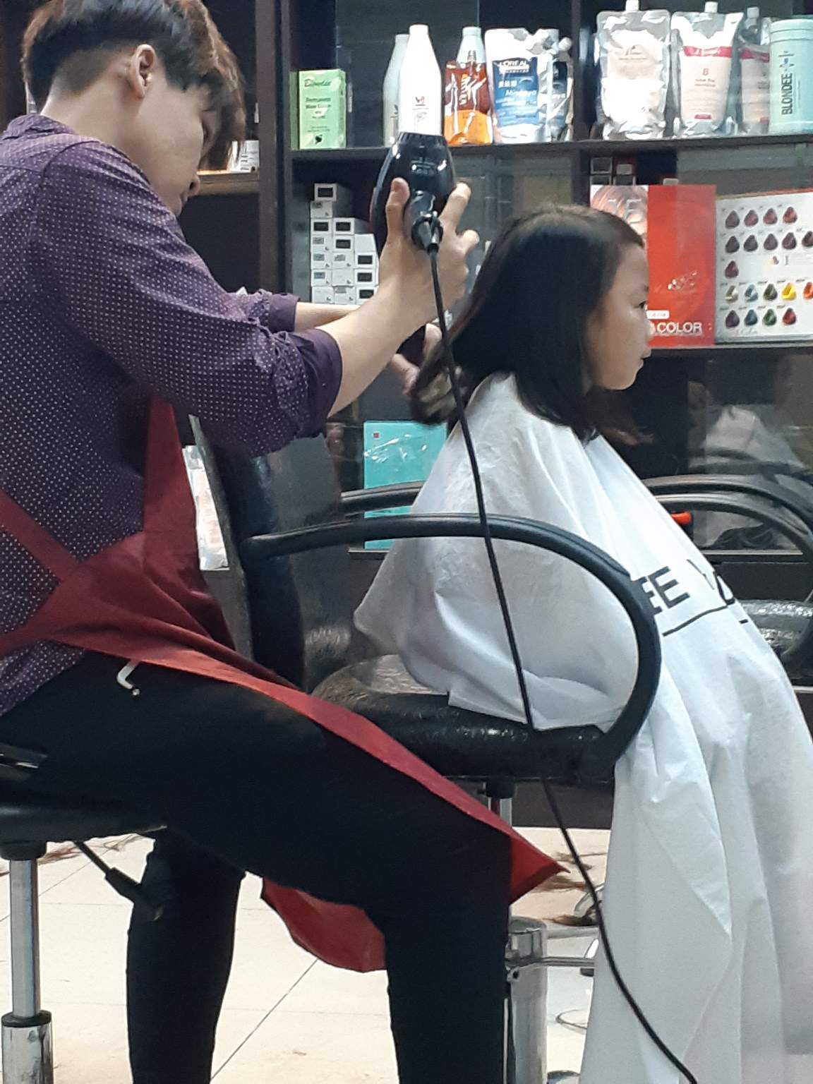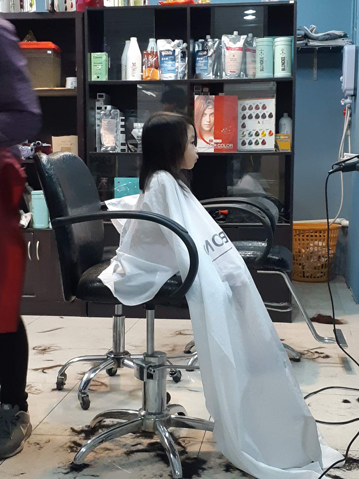 Having her haircut and she looks so serious. Haha😂