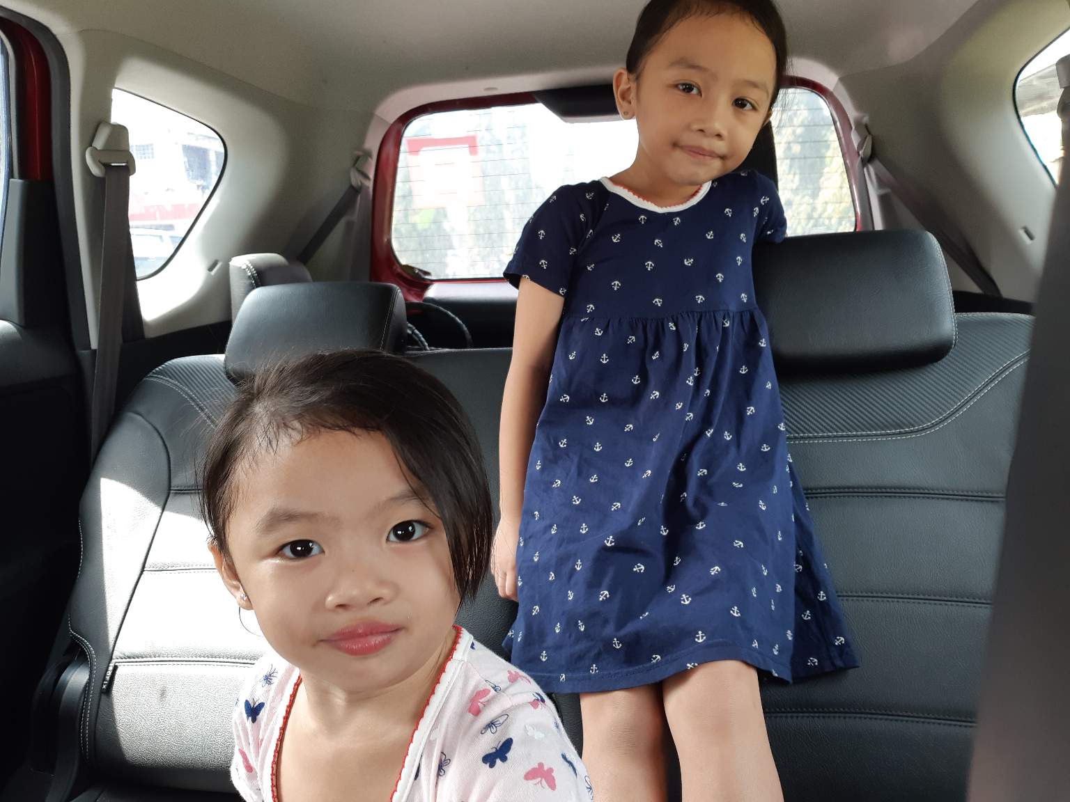 The girls posing themselves before having their haircut and my goodness I didn't know how they managed to learn how to take selfies by themselves.