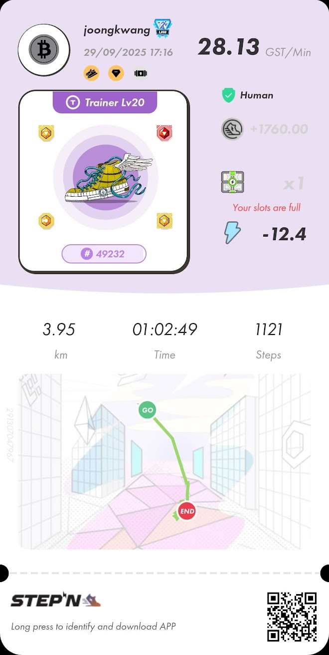 STEPN Polygon 2025/09/29steemCreated with Sketch.joongkwang (67)in #blog • 7 months ago STEPN에 버그가 있습니다. 걷는 동안 에너지 소모량이 정확하게 기록되지 않습니다. 이로 인해 과하게 걷는 경우가 많습니다. 손실을 현금화하세요. #stepn #polygon #matic