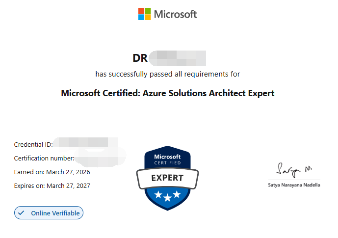 Excited to share that I’ve passed AZ-305: Azure Solutions Architect Expert 🎉