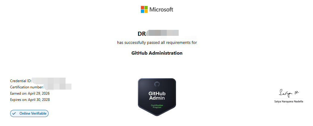 I have just passed Microsoft GH-100 Github Administration Certificate!