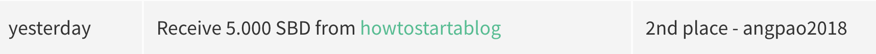 Imagine my surprise when I logged on to Steemit late yesterday afternoon and discovered 5 SBD was deposited into my Steemit wallet. Hurray! That was when I realised I had won second place in the #angpao2018 competition organised by @howtostartablog!