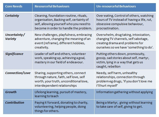 Some of us at our very core, gravitate towards connection and love, or perhaps significance; while others look for growth or contribution. It is one thing to know that we HAVE these needs/drivers, it is a whole other thing to achieve them in ways that are most beneficial in satisfying these needs.