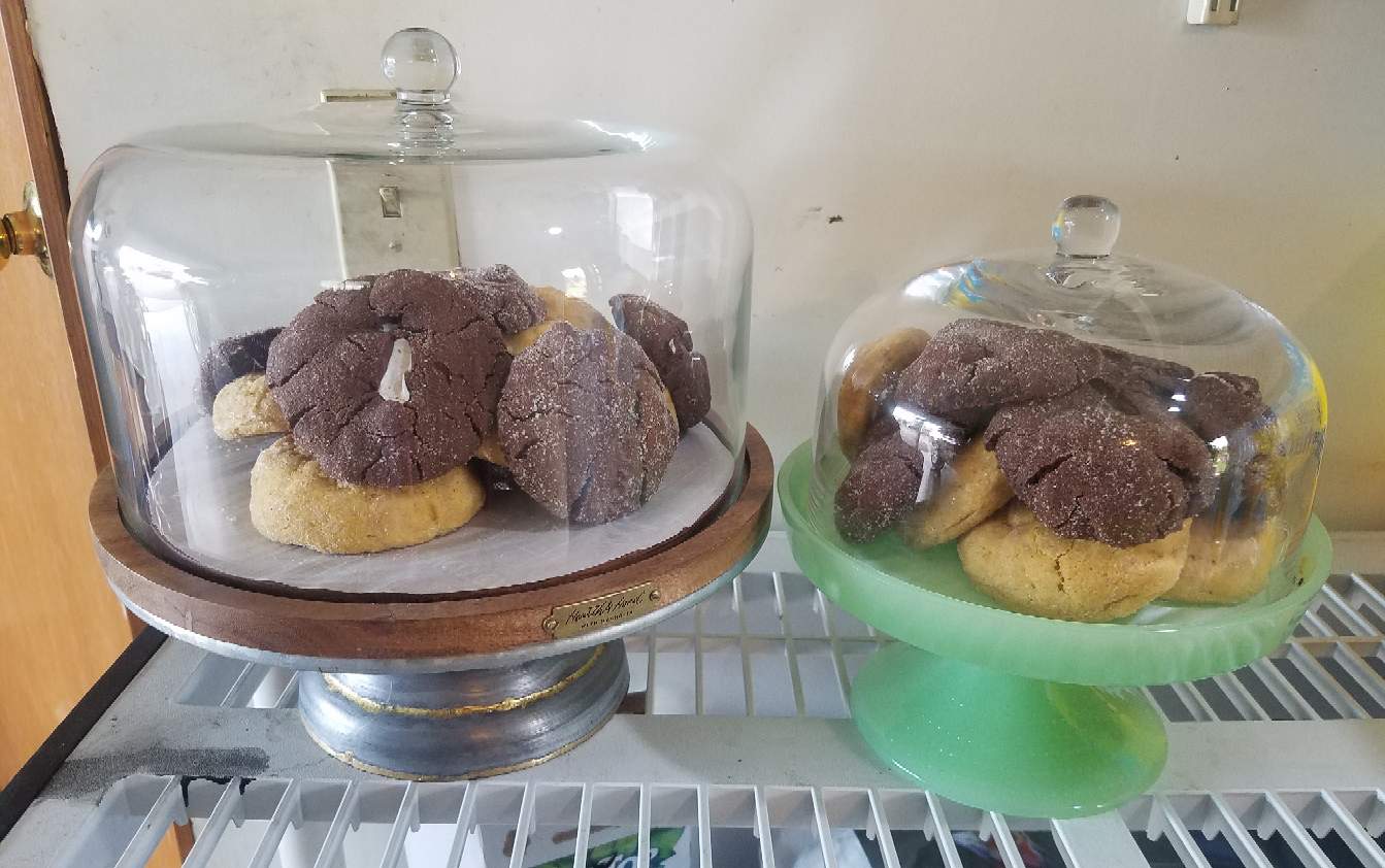 I baked 2 dozen stuffed cookies to donate and then bought some cute cake stands to put them in. Here they were. Cute huh?