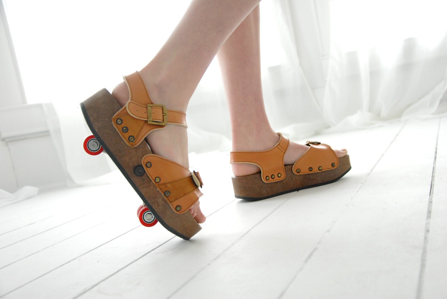 Speaking of fun...if these aren't the most fun and unique thing you've seen all year...these Italian sandals from the 1970s transform into roller skates! Wheels hide up inside until the little lever is pulled, and easily go back into hiding when you're finished joy riding.