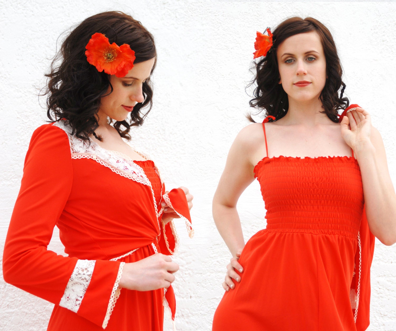 Options are good, which is why this beautiful red vintage 1970s sundress and its matching bell-sleeved bolero are perfect for a summer soirée.